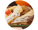 国産の帆立を柔らかく炊き上げました。ピリッと爽やかな和山椒がきいた上品でさっぱりとした風味の一品です。