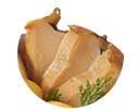 国産の天然鮑をやわらかく仕上げるために、大根を加えてじっくりボイルし、上品に炊き上げました。