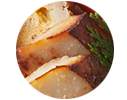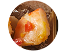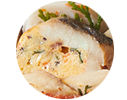 下味を付けたイサギに、人参、木耳入りの卵生地を包んで蒸し、香ばしく醤油だれで焼き上げた一品。