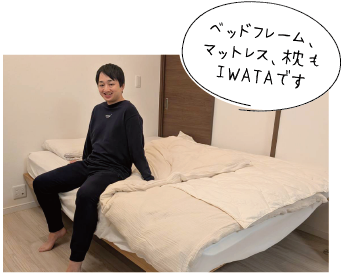 子どもと一緒に入浴することで、22時就寝 → 6時起床のリズムをキープ。寝る前はスマホを見ない時間をつくり、目と頭を休めています。敷きパッドから使い始めたIWATA布団は、あまりの心地よさに感動して今は寝具一式を愛用中。