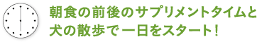 6時に起床してまずテレビでニュースを確認し「ありがとう乳酸菌」を摂ってから「昆布水」と朝食。「YUTAKAMI」 「能活生活」「SONOKO GG」「SO ENERGIE」「SO LIFTIE」などもこのタイミングでまとめて摂ります。 無理なく続けられるリズムが大切です。朝食後は一日のウォーミングアップを兼ねて犬の散歩へ