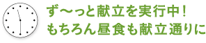 昼食は11時半頃に。ここ1年ほどはずっと「4週間完全実行献立セット」を続けているので、献立のメニュー通りの昼食を持参しています。